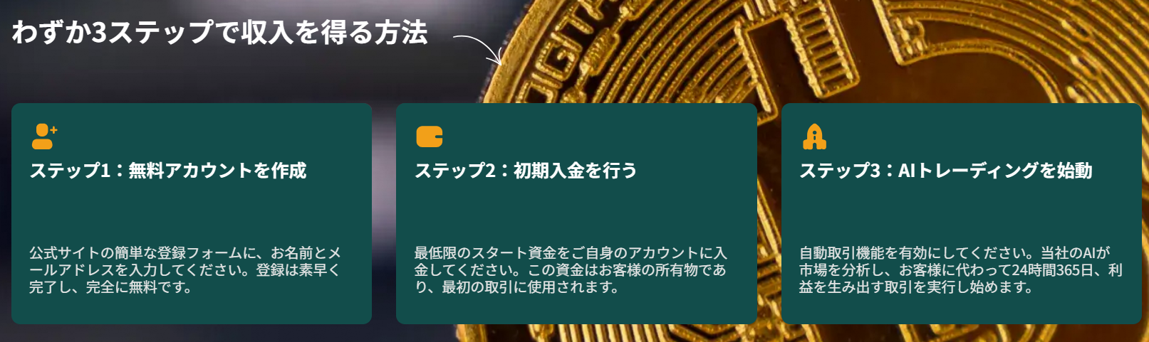 アカウントを作り、入金するだけで、あとはAIが利益を生み出す、といった説明が記載されています。