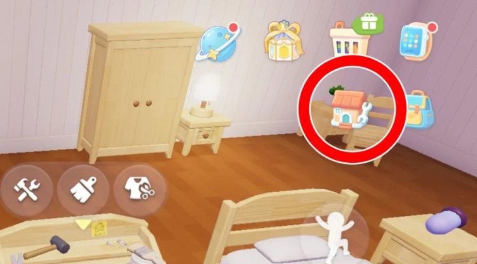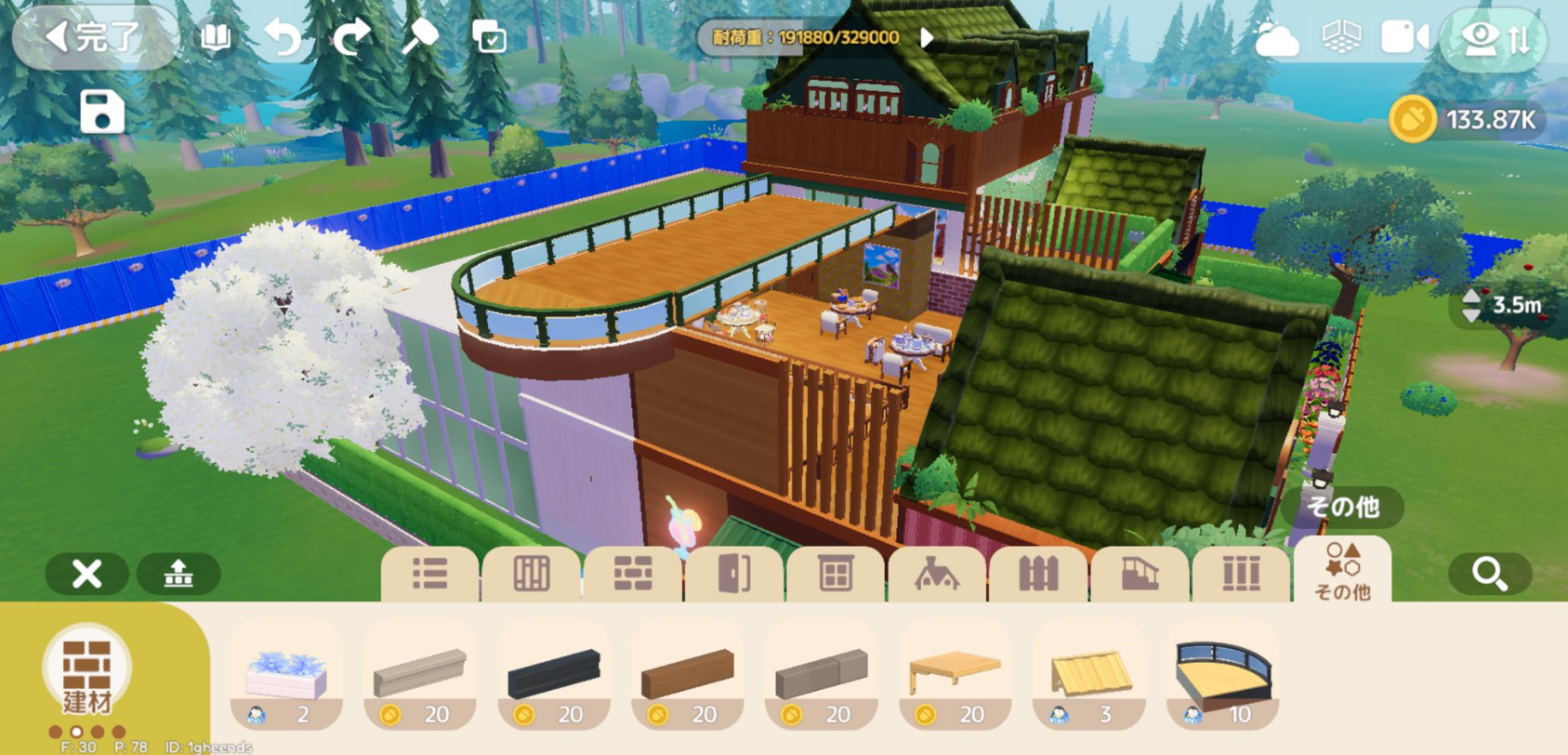 ホームで「家」アイコンをタップして、左下の「建材」にある「その他」項目から、建材を選択すれば設置する画面になります。