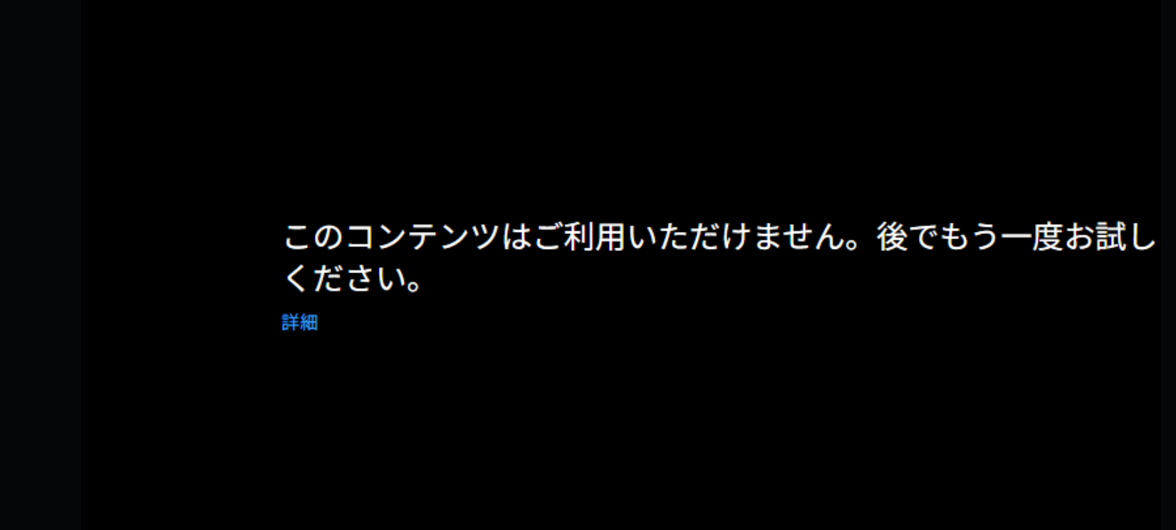 このコンテンツはご利用いただけません。後でもう一度お試しください。ってテロップが出る。