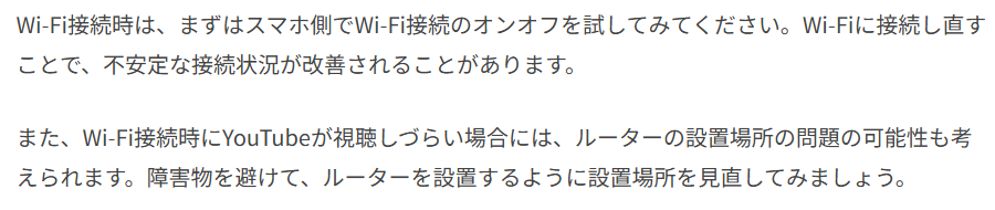 具体的には、「Wi-Fi接続のオンオフ」「ルーターの設置場所」などが挙げられます。